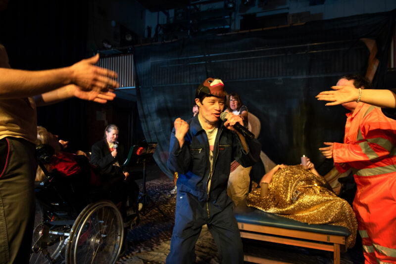 Das inklusive Ensemble entwickelt eigene Stücke oder bearbeitet bekannte Stoffe neu. So entstehen eigenwillige und berührende Inszenierungen für ein breites Publikum. Neben den regelmäßigen abendlichen Vorstellungen können Schulklassen und Gruppen in Workshops, Fortbildungen und öffentlichen Proben die Arbeit des Ensembles kennenlernen.
